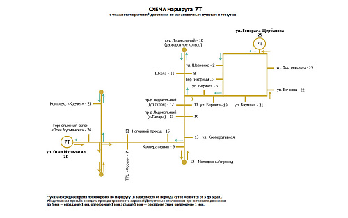 В схеме указано среднее время прохождения по маршруту (так как в зависимости от периода суток меняется от 5 до 6 раз).